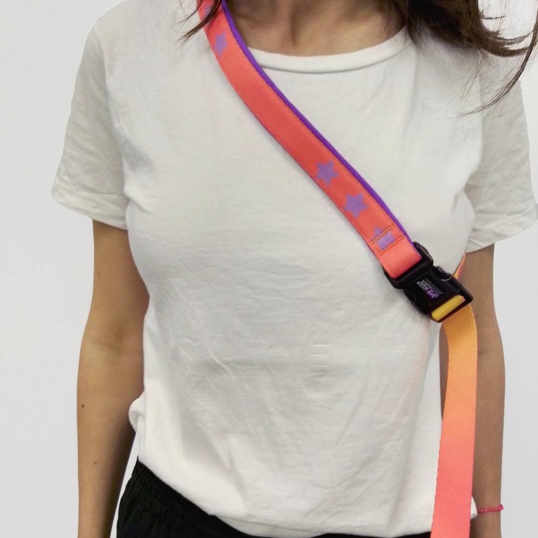 Apta para la cintura, el hombro o como correa regular, gracias a su hebilla de bloqueo fácil de ajustar, junto a un mosquetón personalizado de alta resistencia.