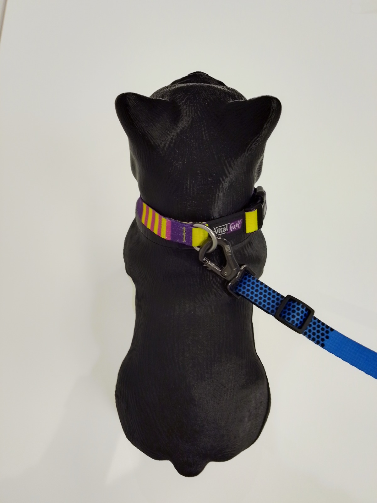Cuenta con un mosquetón personalizado de metal ultra resistente para sujetar el collar o arnés, lo que asegura un agarre seguro y confiable.