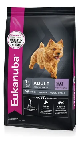 Eukanuba Adult Small Breed es un alimento balanceado completo para perros adultos mayores a 12 meses de edad y de razas pequeñas como Caniche, Yorkshire Terrier, Chihuahua, Daschund, Maltes y otras razas o perros mestizos que pesan menos de 10 kg.