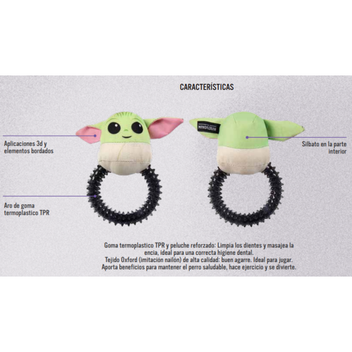 - Diseño Encantador: Con la tierna imagen de Grogu, este mordedor cautivará a los amantes de Star Wars y hará que cada sesión de juego sea especial.