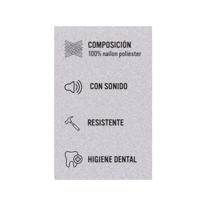 - Función Dental: Diseñado para ayudar a limpiar los dientes y masajear las encías, contribuyendo a una buena higiene bucal mientras tu mascota se divierte.