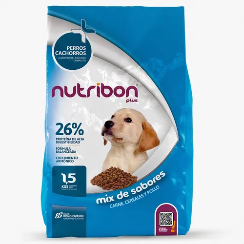 Alimento balanceado completo extrusado de alta digestibilidad que puede ser suministrado seco, o humedecido en agua, caldo o leche a perros hasta el primer año de vida.