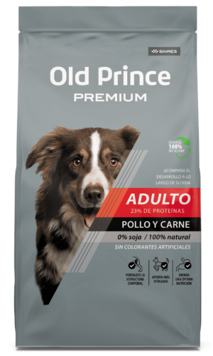 Harina de pollo, harina de carne, arroz, maíz, trigo, gluten de maíz, germen de maíz desgrasado, aceite de pollo, aceite de pescado (fuente de omega 3), hidrolizado proteico de menudencias bovinas, pulpa de remolacha (fuente de fructo-oligosacáridos – FOS), fuente de fibra insoluble (celulosa), levadura de cerveza, zeolita, extracto de yucca schidigera, propionato de calcio, ácido propiónico, metionina, antioxidantes naturales: extracto de romero, ácido citrico, vitamina C, betacaroteno, luteína, vitaminas: A, D3, E, K, B1, B2, B6, B12, ácido fólico, ácido nicotinico, pantotenato de calcio, biotina, colina, minerales: zinc, hierro, cobre, yodo, manganeso y selenio.
