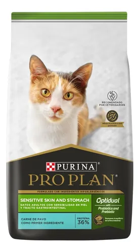 Formulado para gatos adultos con piel y estómago sensible.