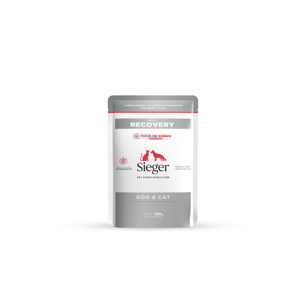 Sieger Wet Adult Energy Recovery es un alimento balanceado húmedo completo para perros y gatos adultos, formulado con una concentración de nutrientes específicos, sumamente digestibles. Su alta densidad energética y proteica ayudan a promover la recuperación nutricional en situaciones en donde perros y gatos lo requieran.
