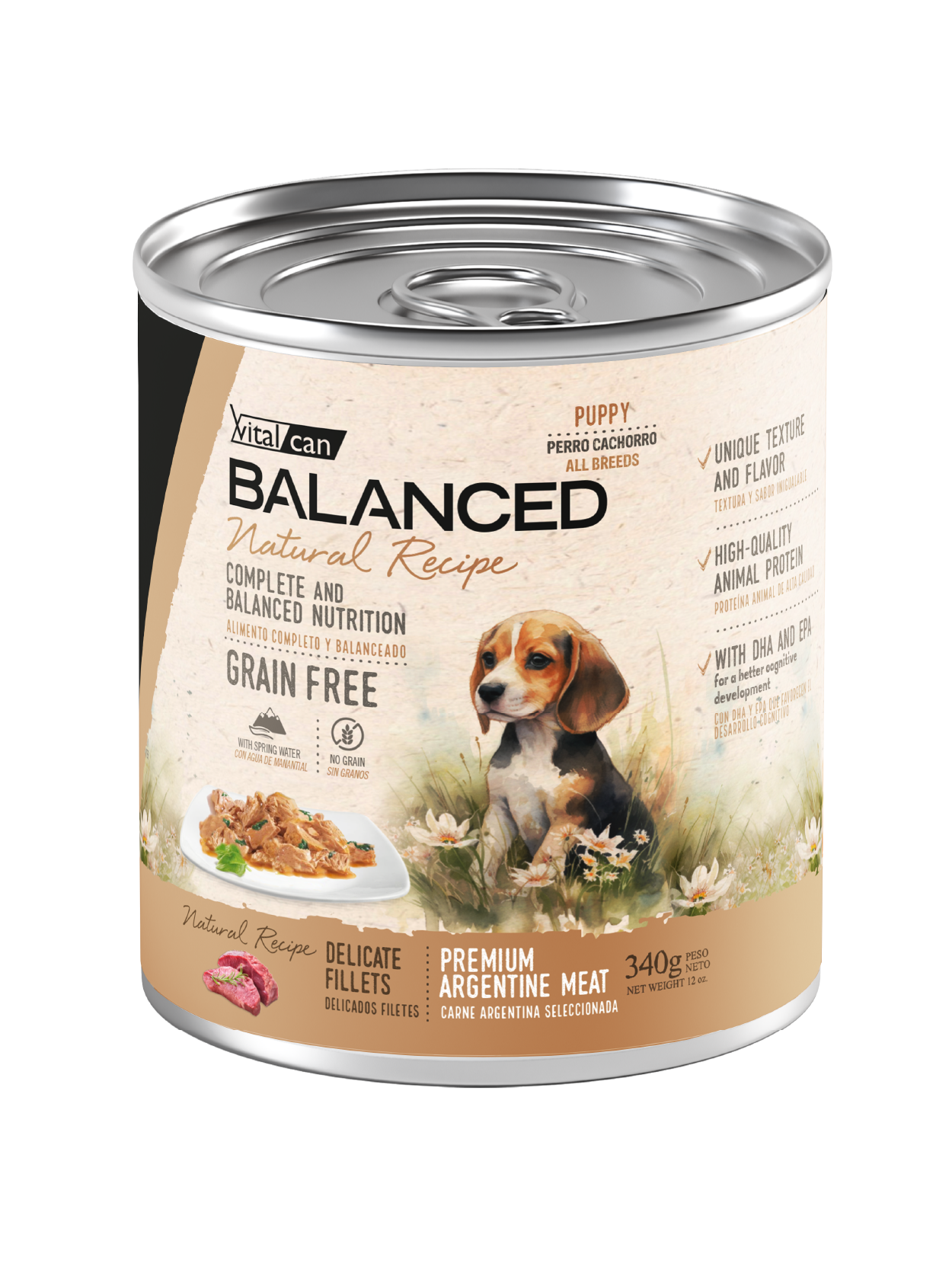 Receta a base de carne argentina seleccionada, reconocida internacionalmente por su gran calidad. Es fuente de proteínas de alto valor biológico aportando aminoácidos esenciales y colaborando al desarrollo y mantenimiento muscular.