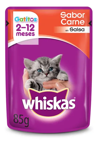 Agua, menudencias (bovinas y/o porcinas y/o de pollo), subproductos (de pollo y/o bovinos y/o porcinos y/o pescado), plasma bovino, harina de trigo, aceite de pollo y/o pescado, harina de subproductos de pollo y/o arveja en polvo y/o gluten de trigo, espesantes (goma xántica y/o almidón modificado), estabilizantes (tripolifosfato de sodio), vitaminas (D, E, B1, B2, B6, ácido fólico, colina y/o ácido ascórbico), minerales (cloruro de sodio, cloruro de potasio y/o fosfato dicálcico, carbonato de calcio, iodato de calcio, óxido de zinc, óxido de magnesio, sulfato de manganeso, sulfato de cobre), aminoácidos (taurina y/o glicina y/o metionina), colorantes (caramelo, hemoglobina), saborizante (xilosa y/o dextrosa).